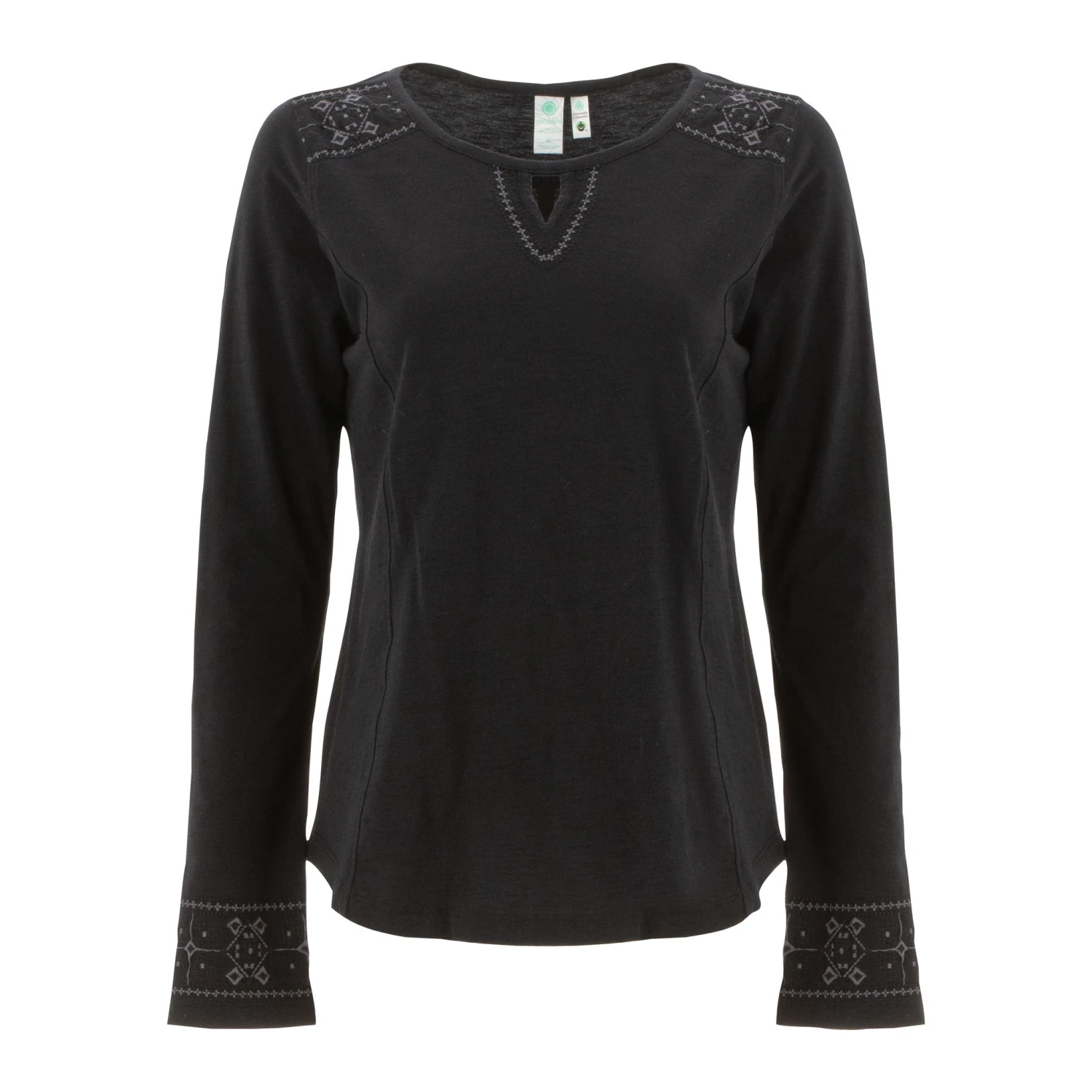 - Embroidery details at shoulders and cuffs and neckline