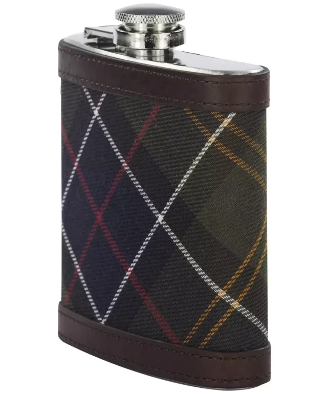 This Barbour Tartan Stainless Steel Hip Flask is a sophisticated design made from 6oz stainless steel and features an easy-to-open screw fastening lid. Lined with the classic Barbour tartan and genuine brown leather trims, this compact Barbour hip flask is the perfect gift for the person who has everything.
