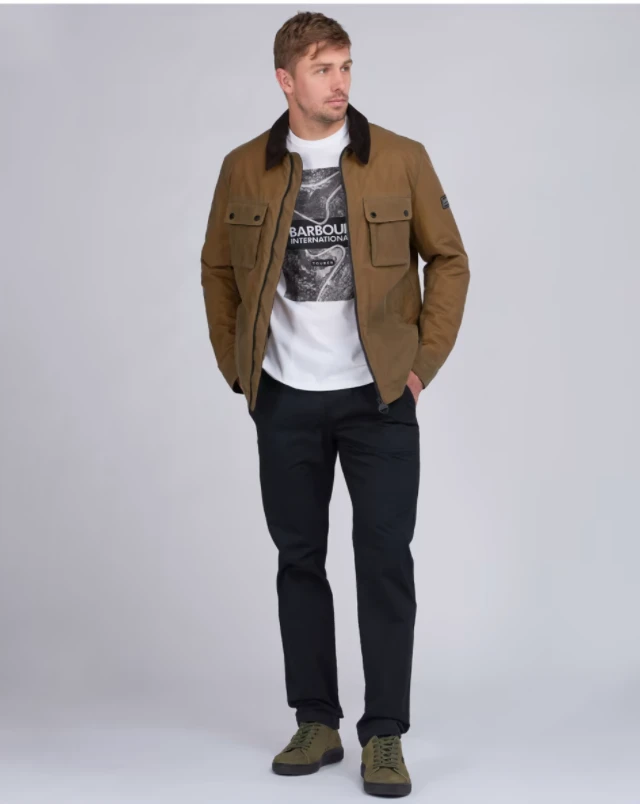 Add warmth and style to your look this season with the Men’s Barbour International Accelerator Baffins Wax Jacket. Made from a 6oz wax cotton with a full quilted lining, the jacket offers warmth and comfort and boasts a smart and sleek aesthetic you are sure to love. With details including a cord collar, adjustable cuffs and four front pockets, the jacket looks and feels great to wear and is complete with signature Barbour International branding to the sleeve.