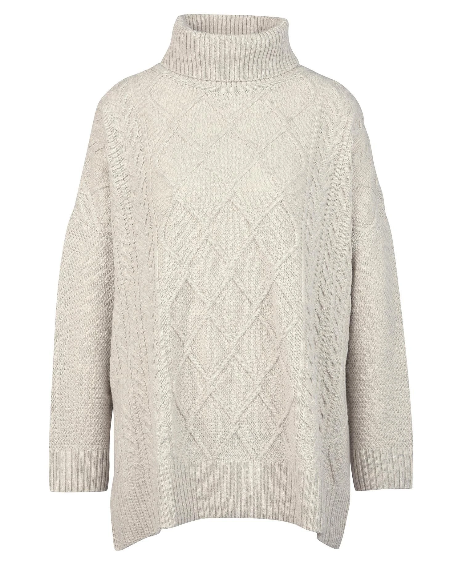 The Barbour Burne cape is imagined in a warm wool-blend fabric with a roll neck and long sleeves. It’s detailed with an argyle-inspired cable knit, making it a stylish option for updating casualwear looks.