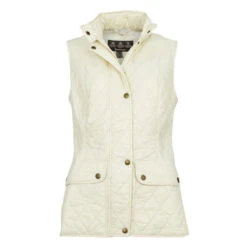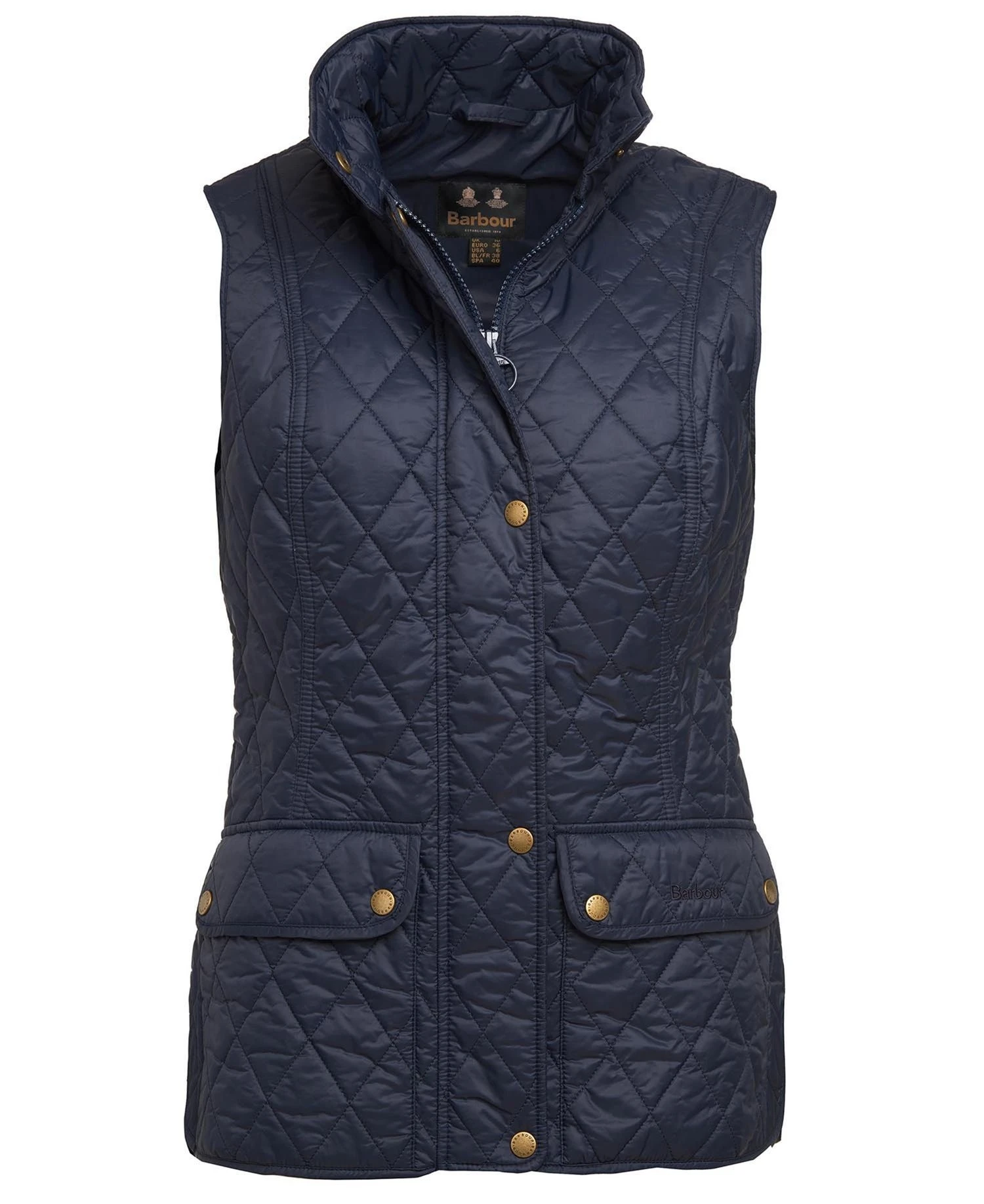 Styled with a zip fastening to a stand collar with a stud-over storm flap to keep the wind at bay, it features two deep side pockets to keep any essential items within easy reach. Detailed with a curved side hem and adjuster tabs for a flattering silhouette, the gilet is finished with discreet tonal Barbour embroidery to the left pocket flap as worn.