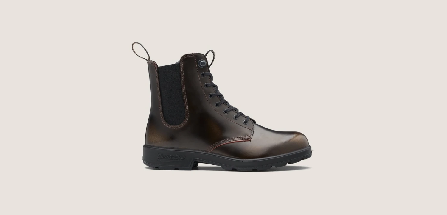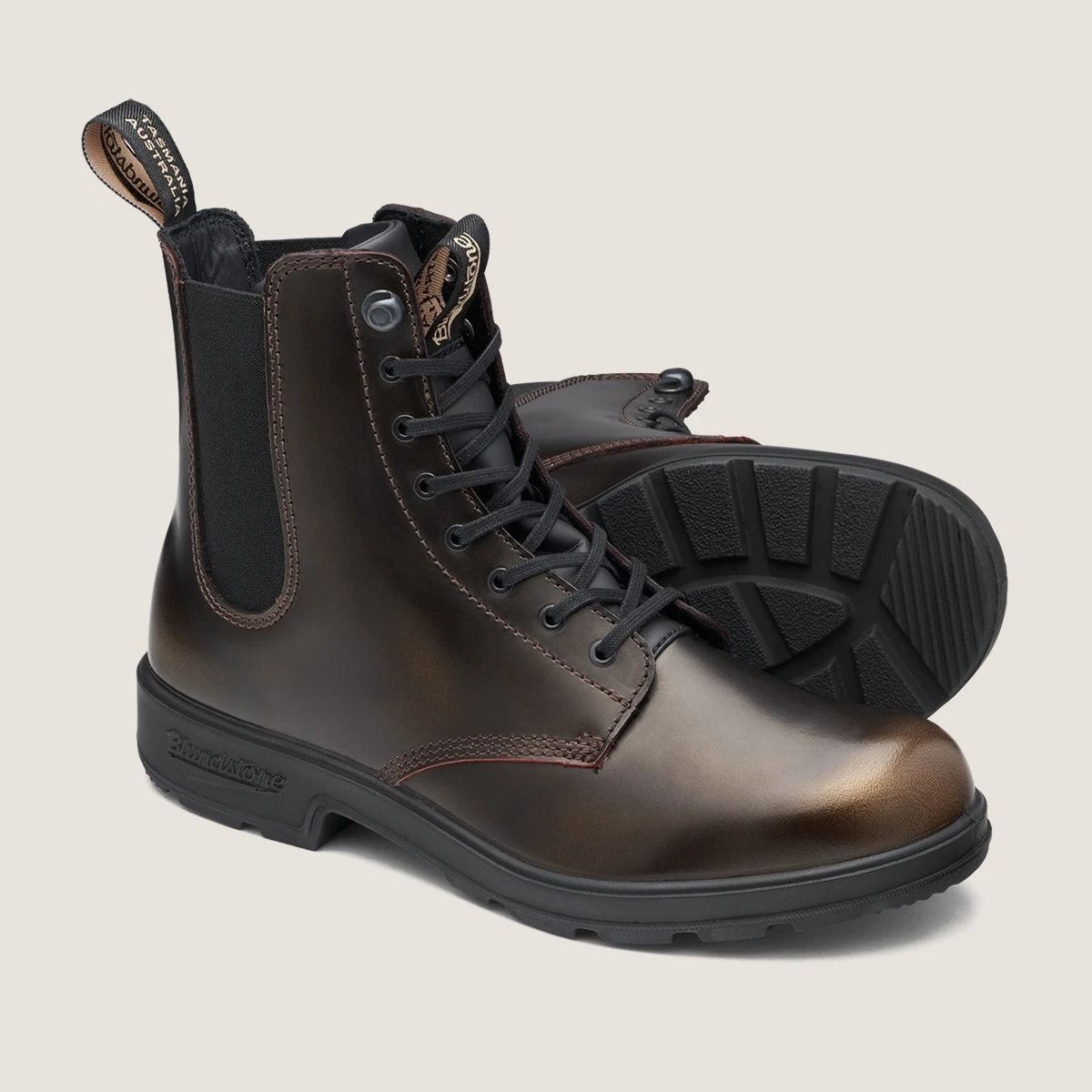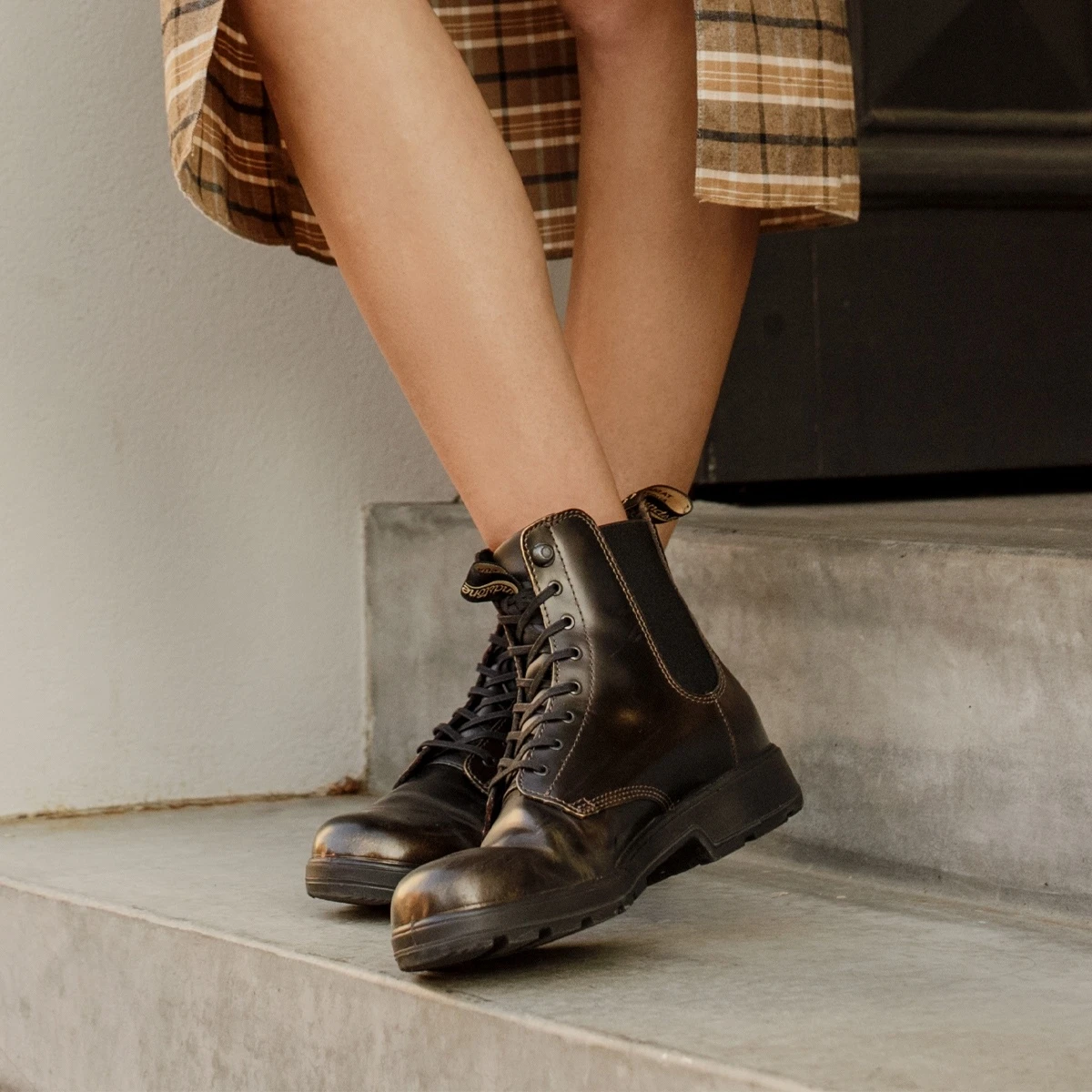 Chelsea meets combat in this zero lacing boots. The unique brushed leather, makes #2218 Lace-Up Gore Boot, a statement piece and truly, a must-have.