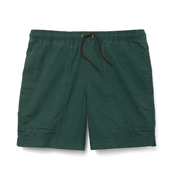 Knee-deep in a mountain stream casting for brook trout or cooling off in that lake you just hiked into, you’ll be glad you’re wearing our Dry Falls Shorts. Constructed of cotton with a bit of stretch for non-binding ease of motion, you won’t even notice you’re wearing them. Just like your favorite swim trunks, the waistband secures with a drawcord, eliminating the need for a belt–a feature that adds comfort with a backpack’s hip belt tightened down. Deep front- and Velcro®-flapped-rear pockets keep the necessities secure. 7” inseam.