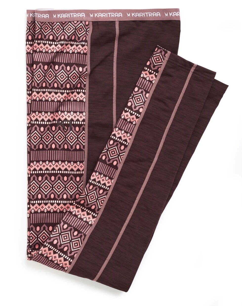 The Kari Traa Lune Pant is a warm synthetic performance baselayer built for all-season adventures. The brushed inside is next-to-skin soft while the Jacquard knit waistband is smooth and snug. The 4-way stretch fabric enables a wide range of motion, while flatlock seams eliminate chafing, and the playful design makes outdoors activity fun.