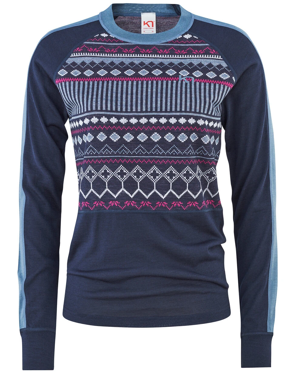 The Kari Traa Tuva Longsleeve is a casual women’s slim fit top that’s ideal for layering. The raglan sleeves and cuff endings stop from rolling up when you pair it with a jacket. The round neck, stripe detail and color block flatter the bust, while the diamond and delicate lines play up Scandi heritage. Made using super-soft lightweight wood-fiber modal and ethically sourced Merino wool, you’ll love the way the Jacquard-knit fabric feels against your skin. OEKO-TEX® 100 certification means that no fabrics pose any harm to human health.