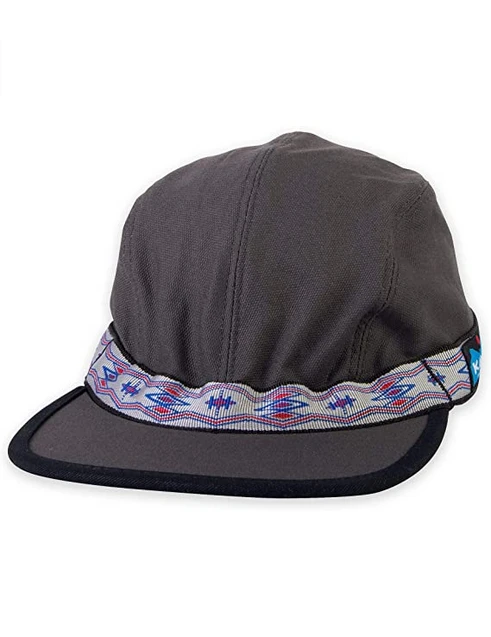 4 panel cap, slight curved bill, black underbill, patterned nylon tubular webbing with KAVU adjustment.