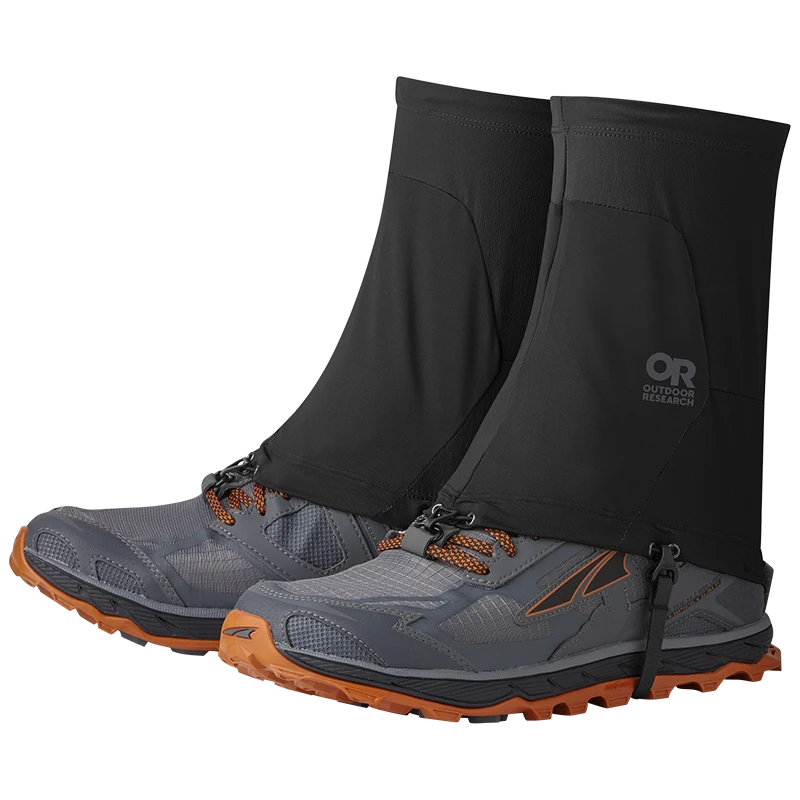 Two of our lightest and most protective fabrics, hybrid-mapped into a gaiter for reliable defense against pesky rocks, dirt, and debris. ActiveIceâ„¢ technology actually cools you as you sweat, while providing UPF 50+ sun protection. Ferrosi fabric wards off wind and rain, and adds durability, stretch, and breathability for when you’re moving fast in rugged terrain. The bottom of the gaiter is held securely by a dual attachment hypalon strap, along with a hook/loop attachment for the back of your shoe. You’ll receive an extra pair of stick-on loops in the case that your trail runners don’t come with that capability built in.