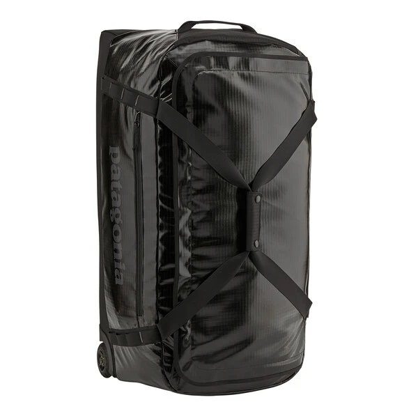 A highly weather-resistant 100-liter gear hauler with sturdy wheels and a telescoping handle. Made with 100% recycled body fabric, lining and webbing.