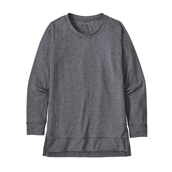This lightweight long-sleeved top is made with a soft blend of 74% recycled polyester/19% TENCEL™ lyocell/7% spandex heathered jersey for comfortable wear with movement. Fair Trade Certified™ sewn.