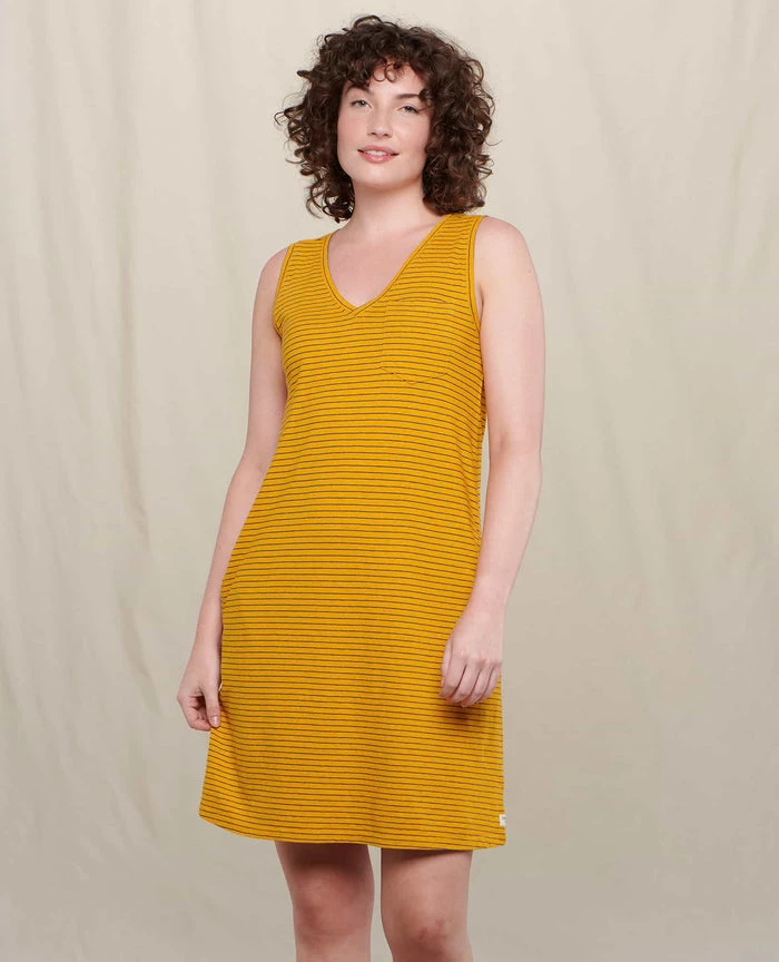 Low on fuss but high on fun, this tank dress will get you where you need to go with swagger to spare. Bold retro stripes meet the sustainable dream team of hemp and organic cotton, and hand pockets give you space to stash essentials. Add a ball cap, some sneaks and congratulations—the perfect outfit has been born.